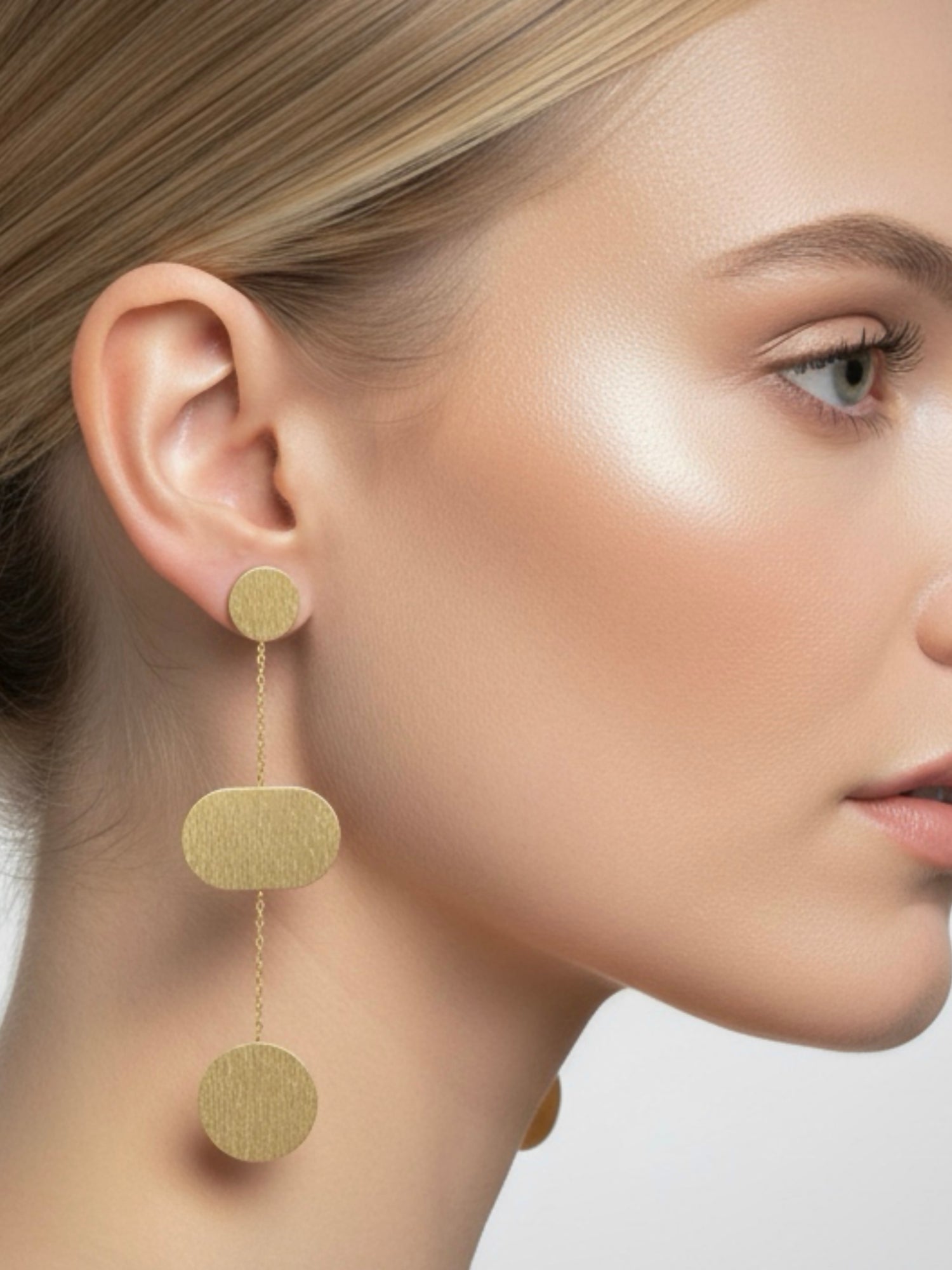 These elegant dangle earrings feature a gracefully hanging design that adds movement and flair to your look. Crafted with precision, they showcase a variety of styles—from delicate chains to bold, eye-catching charms. The design allows the earrings to sway gently, catching the light with every turn. Perfect for enhancing both casual and formal outfits, these earrings bring a touch of sophistication and charm to any ensemble.