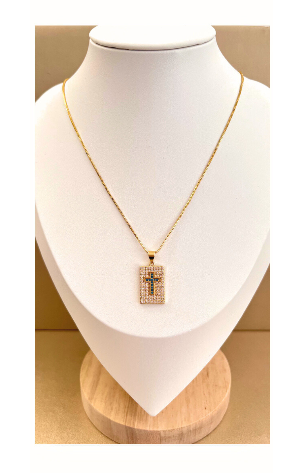 Embrace faith and elegance with our Religious Rectangle Cross Pendant and Chain, beautifully crafted from durable copper and plated in radiant gold. This timeless piece features a striking square cross design, symbolizing spirituality and strength.